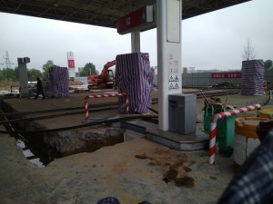 項目簡介 | 江西高速石化有限責(zé)任公司福銀高速臨川西加油站位于江西省撫州市福銀高速臨川服務(wù)區(qū)。加油站為坐西朝東,東面站區(qū)外距站內(nèi)加油機(jī)21.5米處為福銀高速公路,站區(qū)南面為服務(wù)區(qū)停車場及服務(wù)區(qū)營業(yè)場所等;站區(qū)西面圍墻外為荒地;北面為荒地。加油站內(nèi)有混凝土道路與站外公路相連,站區(qū)內(nèi)地勢平坦,坡向道路,地面坡度<0.5%。江西高速石化有限責(zé)任公司福銀高速臨川西加油站改建項目于2018年5月由哈爾濱天源石化工程設(shè)計有限責(zé)任公司進(jìn)行總圖設(shè)計,站內(nèi)分為加油罩棚區(qū)、站房區(qū)、儲油罐區(qū)等;加油站設(shè)5個埋地臥式儲罐,其中98#汽油儲罐1個(30m3);95#汽油儲罐1個(50m3);92#汽油儲罐1個(50m3);0#柴油儲罐2個(50 m3/個),罐總?cè)萘繛?30m3,折算成汽油總儲量為180m3,在一級加油站范圍內(nèi)。現(xiàn)加油站基礎(chǔ)設(shè)施已按設(shè)計圖紙建設(shè)完成,試運(yùn)行情況穩(wěn)定。 根據(jù)《中華人民共和國安全生產(chǎn)法》、和《國家發(fā)展改革委、國家安全生產(chǎn)監(jiān)督管理局關(guān)于加強(qiáng)雙層罐改造項目安全設(shè)施“三同時”工作的通知》的要求,新、改、擴(kuò)建項目完成并成功試運(yùn)行一段時間后,企業(yè)應(yīng)對項目進(jìn)行安全驗收評價,以判斷工程項目在勞動安全衛(wèi)生方面對國家及行業(yè)有關(guān)的標(biāo)準(zhǔn)和法規(guī)的符合性,并檢查相關(guān)安全配套設(shè)施“三同時”的有效性。 | ||